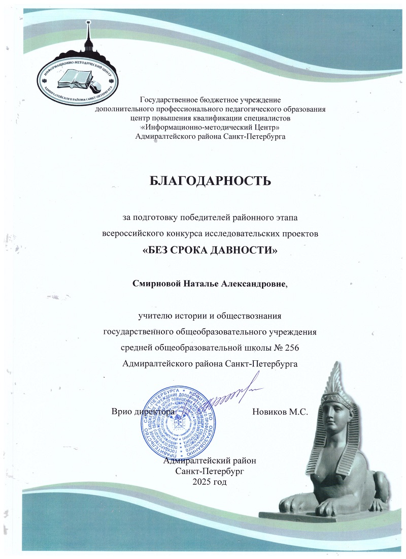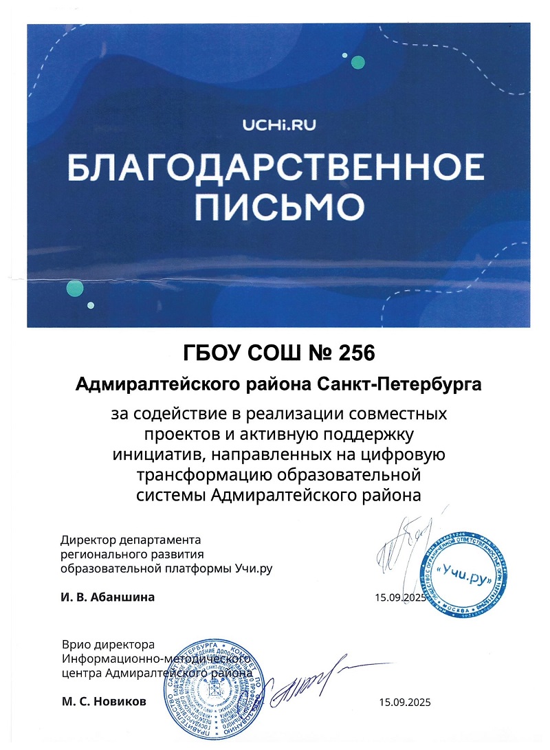 Внимание! На сайте школы опубликовано распоряжение КО №983-р от 28.08.2025 г. "О проведении школьного этапа Всероссийской олимпиады школьников в Санкт-Петербурге в 2025/2026 учебном году" ( .pdf)