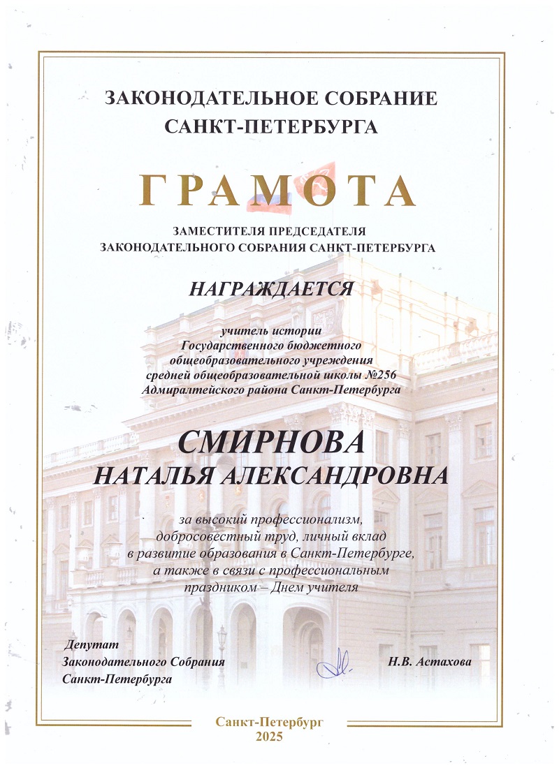 В 2025-2026 учебном году ответственный за проведение школьного этапа ВСОШ — заместитель директора по УВР Виноградова Светлана Владимировна, тел. 8-812-573-98-74